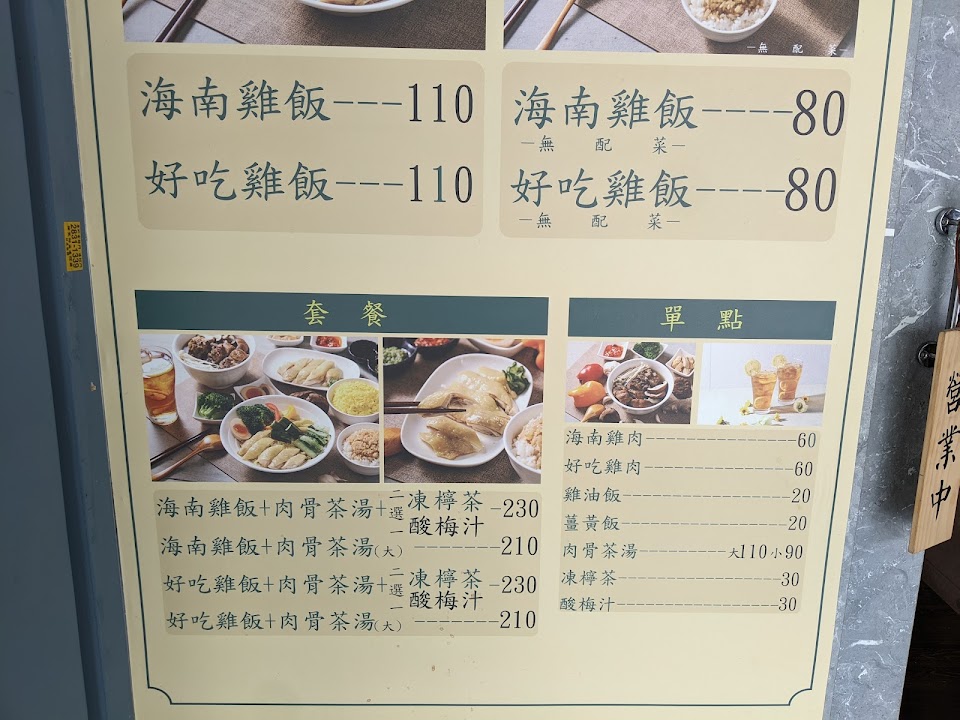 海南雞飯 含小菜 115元 好吃雞飯 無配菜 肉骨茶湯 100元