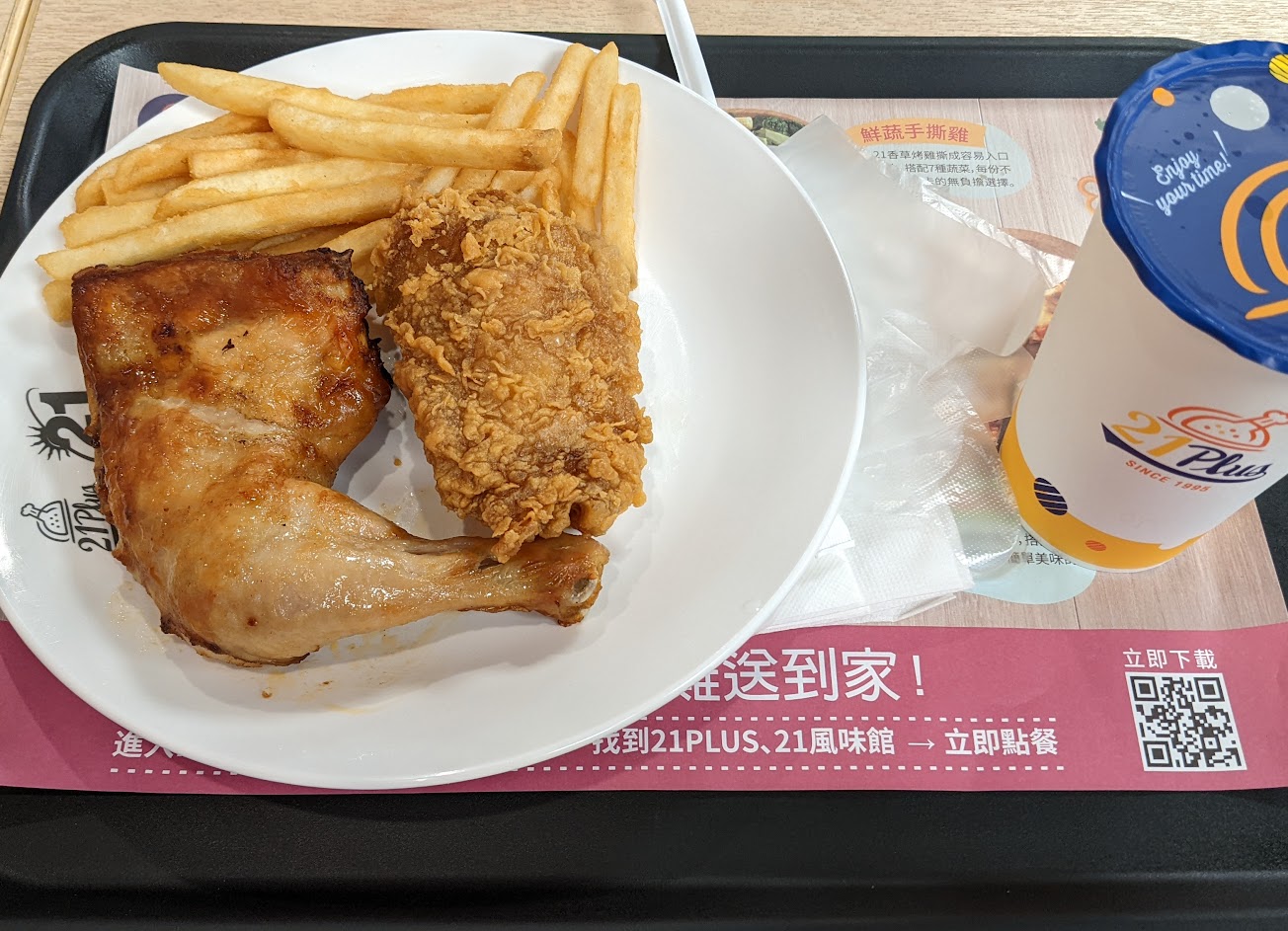 烤炸雞腿餐 21香草烤雞腿餐 地瓜球 烤雞腿 炸雞餐