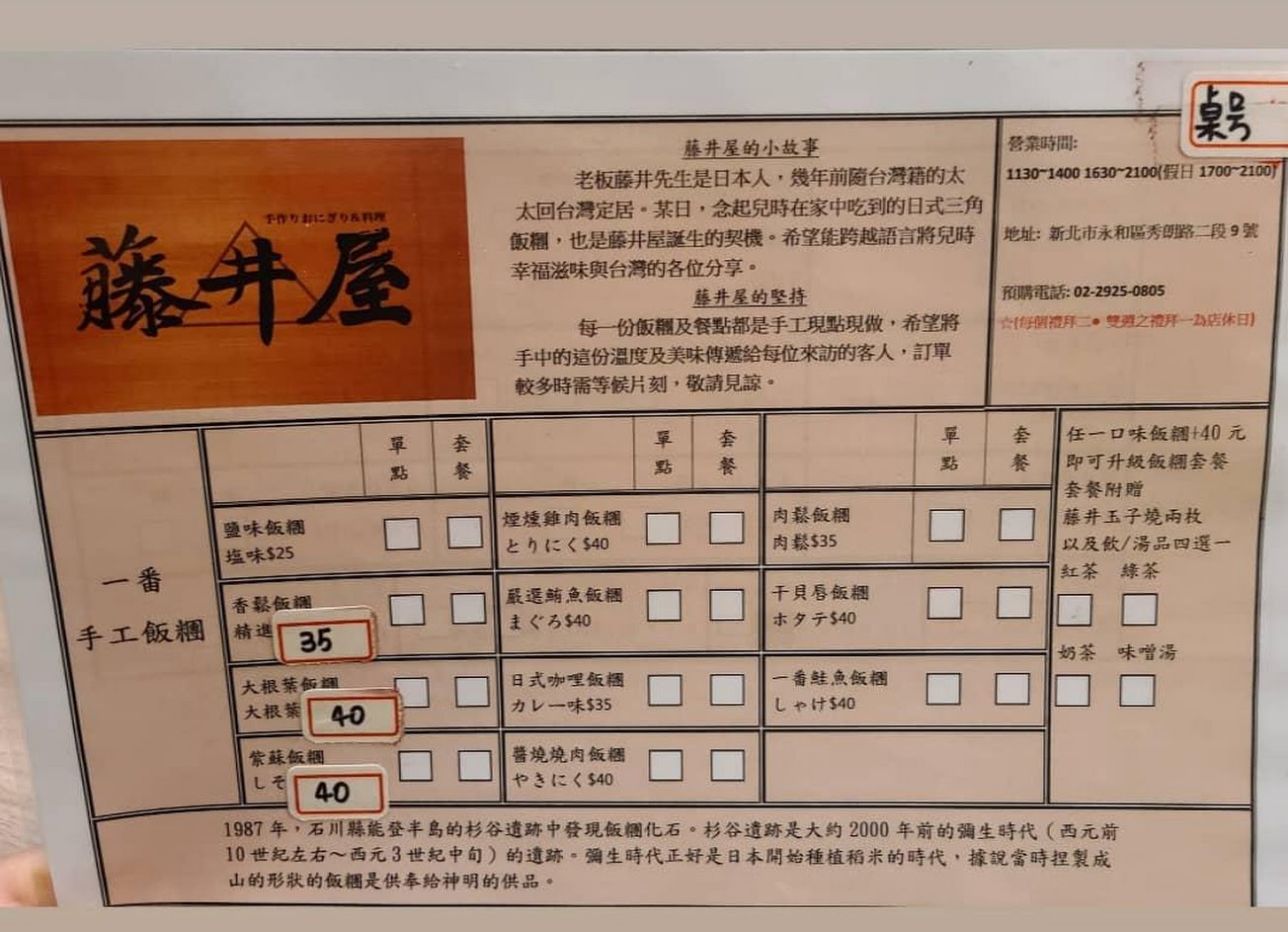 一對日本老夫妻經營,口味道地價格便宜,一份飯糰升級套餐才80元,內含飯糰*1,玉子燒*2,漬黃瓜少許,飲料or味增湯*1~經濟實惠。另外也推薦唐揚雞!