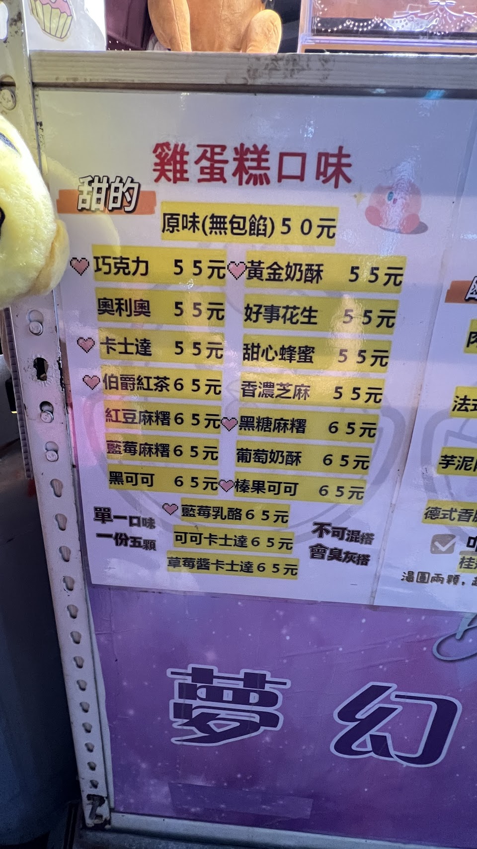 第一次看到有這麼多種口味的雞蛋糕,而且很好吃,來樂華夜市可以吃的美食又多一間了。