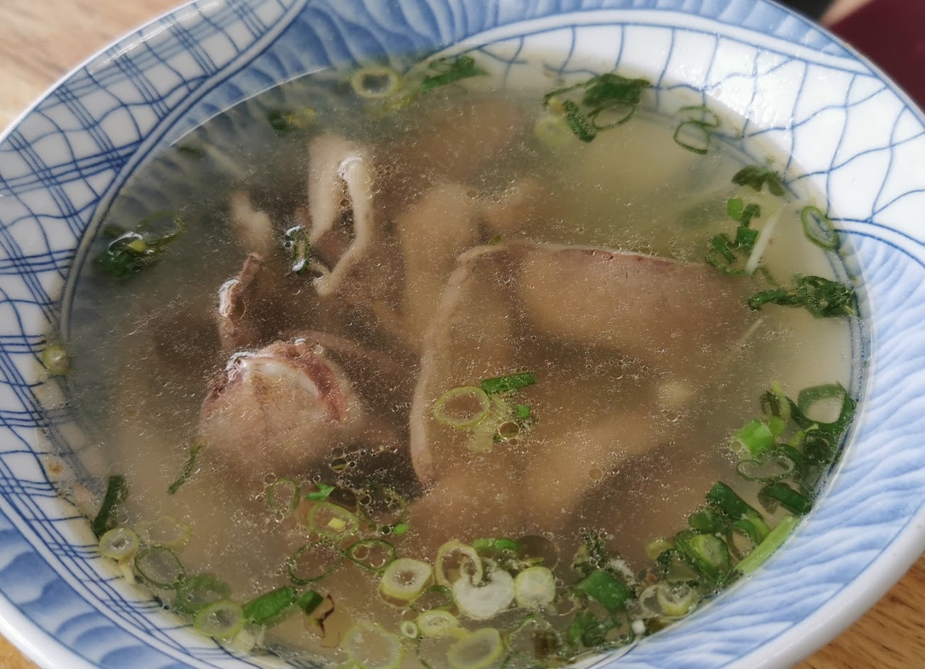 肝連湯的肉也很好吃、湯頭入味,很完美的麵攤小吃。
