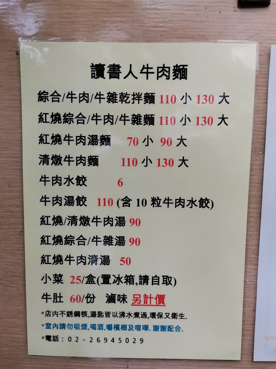 2024最新在地推薦餐廳的菜單_讀書人牛肉麵的菜單、圖片