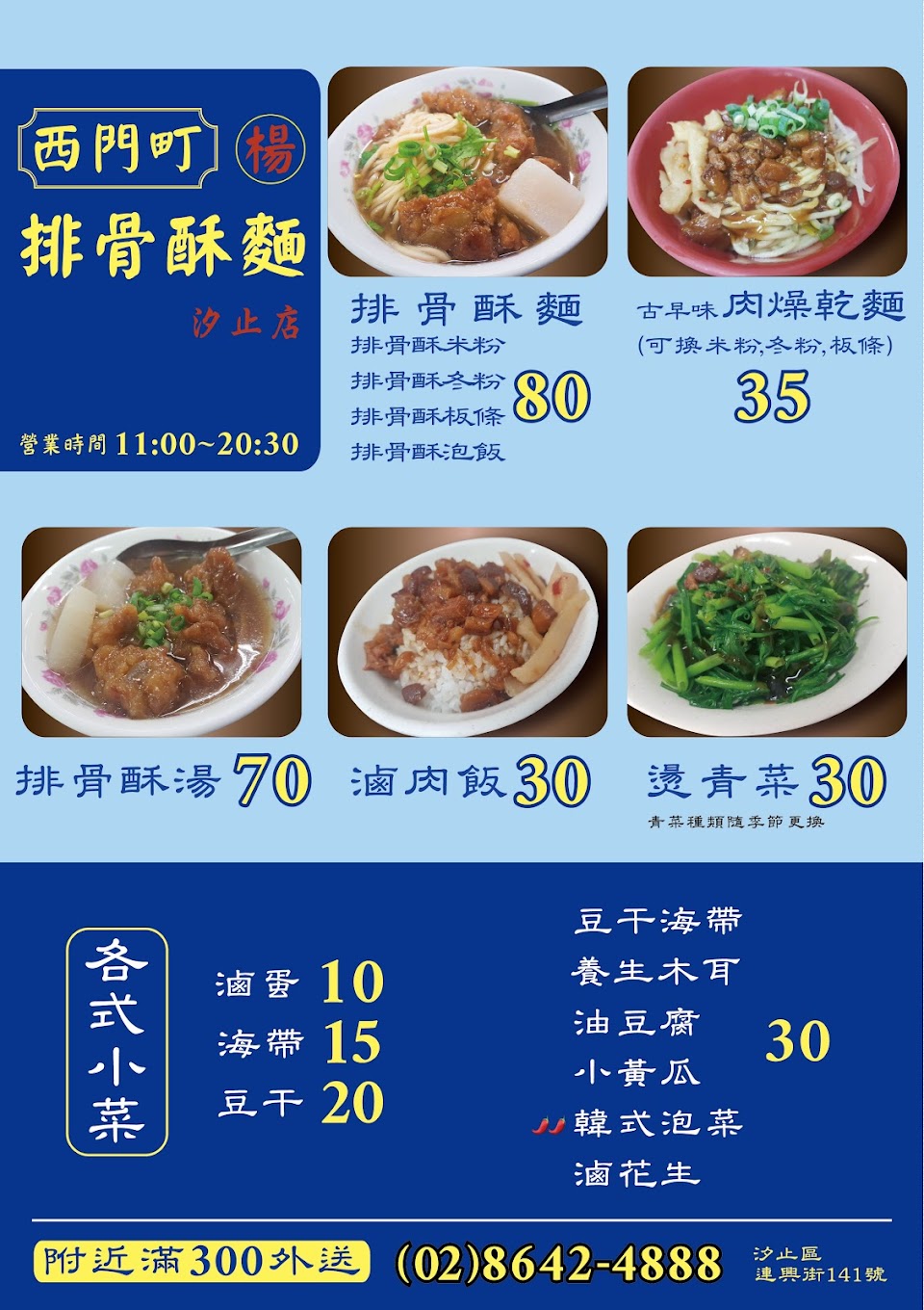 2024最新在地推薦餐廳的菜單_西門町楊排骨酥麵汐止店的菜單、圖片