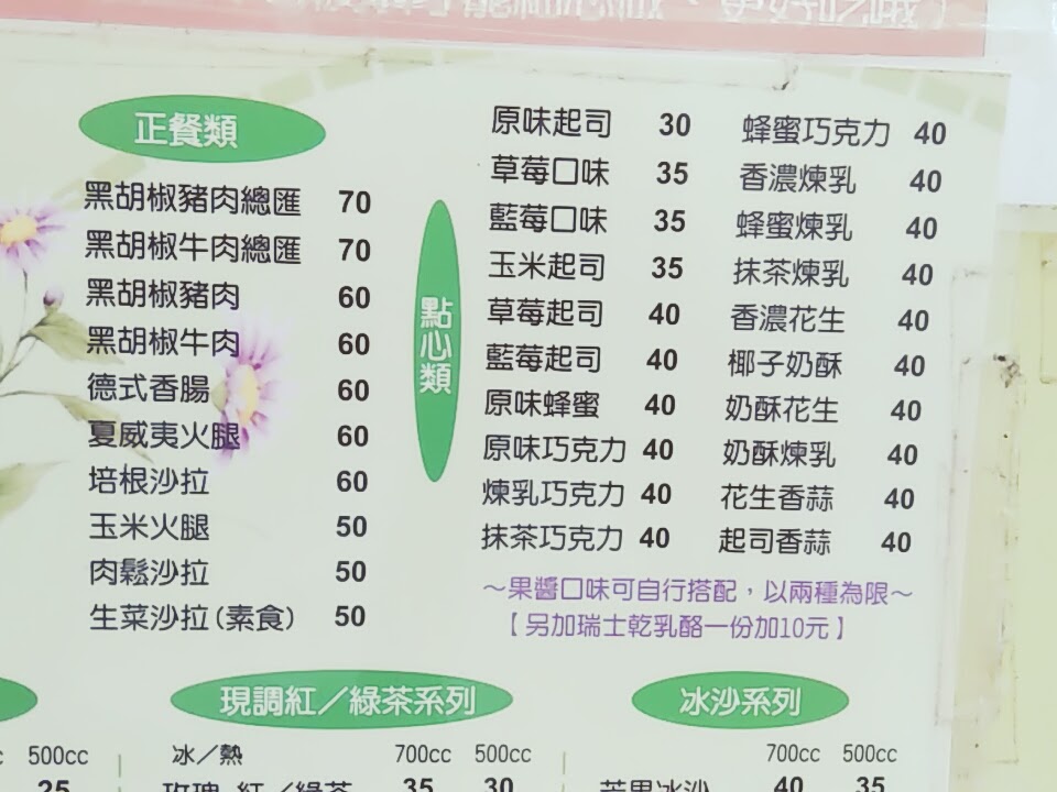 1. 飲料:可以調整甜度,因為茶都是老闆娘自己煮的!口味真的是很不錯!(今天喝鮮奶茶和黑豆枸杞茶)推~