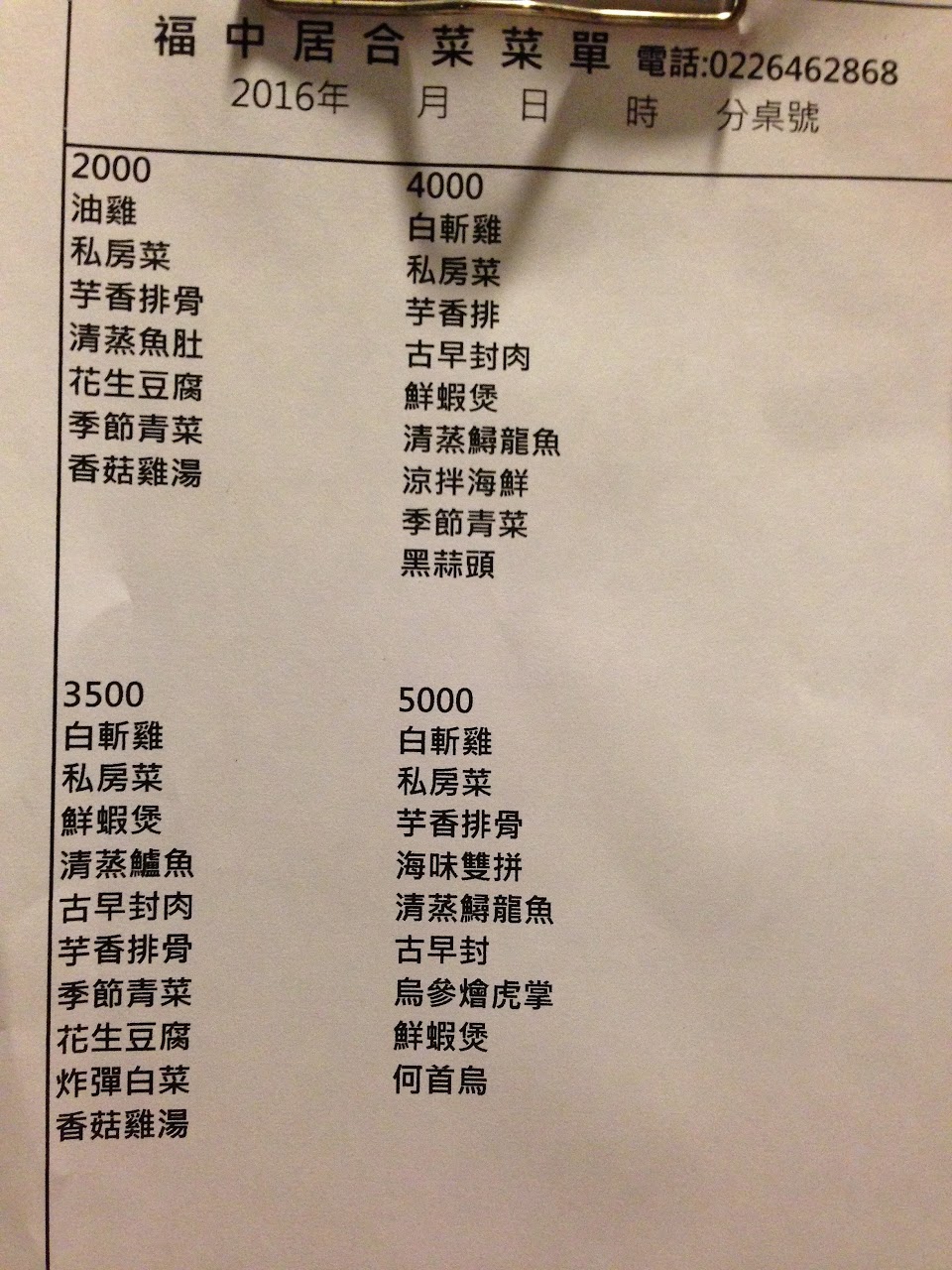 最後看在菜合口味的份上,請老闆給有菜單的名片或紙帶走,以後可以電話先點菜,節省雙方時間。他也面露微笑拿給我,結果是一張用過劃記過的菜單,我問有新的嗎? 他又去拿一張,把白白淨淨的那一面交給我,當我上車翻面一看,又是別人用過的菜單,整張畫得亂七八糟!!