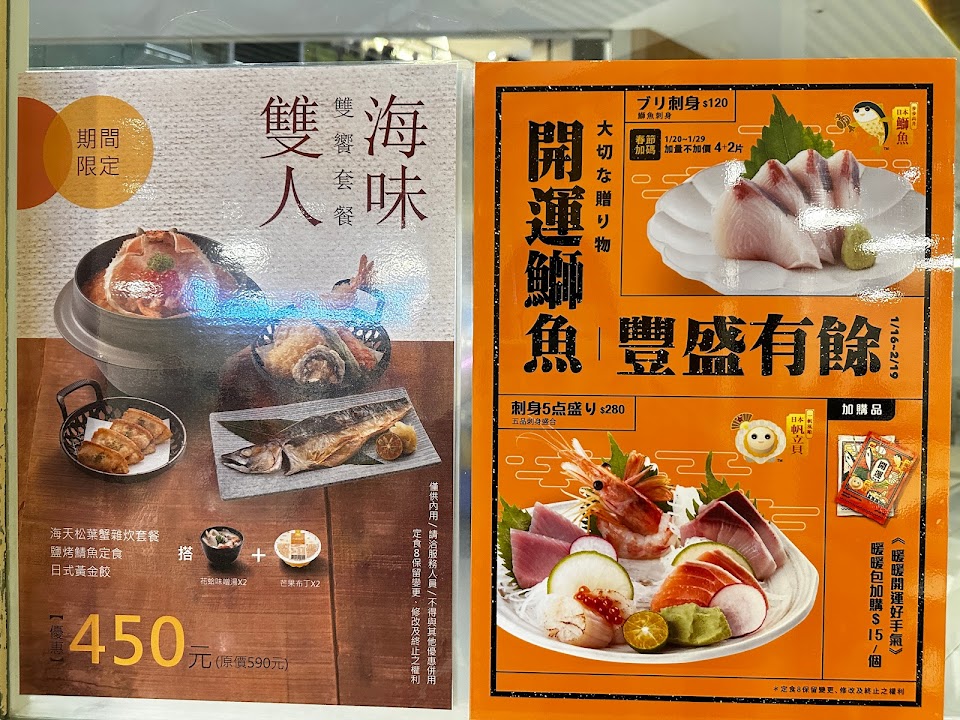 魚片偏小,但是有蓋滿整個碗面,整體來說好吃,鰭邊肉跟鮭魚都烤得很香,上菜速度也很快,環境乾淨舒服。我是週六下午三點半左右去的,外場只有一個店員,她的聲音語速、談吐態度、服務速度都很棒,值得大大讚賞?